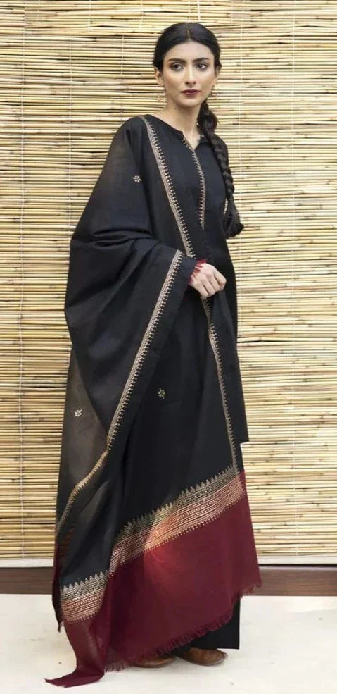 AISLING - 3PC DHANAK EMBROIDERED SHIRT WITH PRINTED TWILL PRINTED SHAWL AND TROUSER - HZG1053