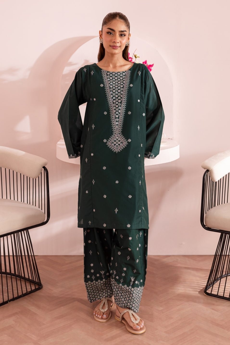 BATIK - 2PC DHANAK EMBROIDERED SHIRT AND EMBROIDERED TROUSER - HZG2018