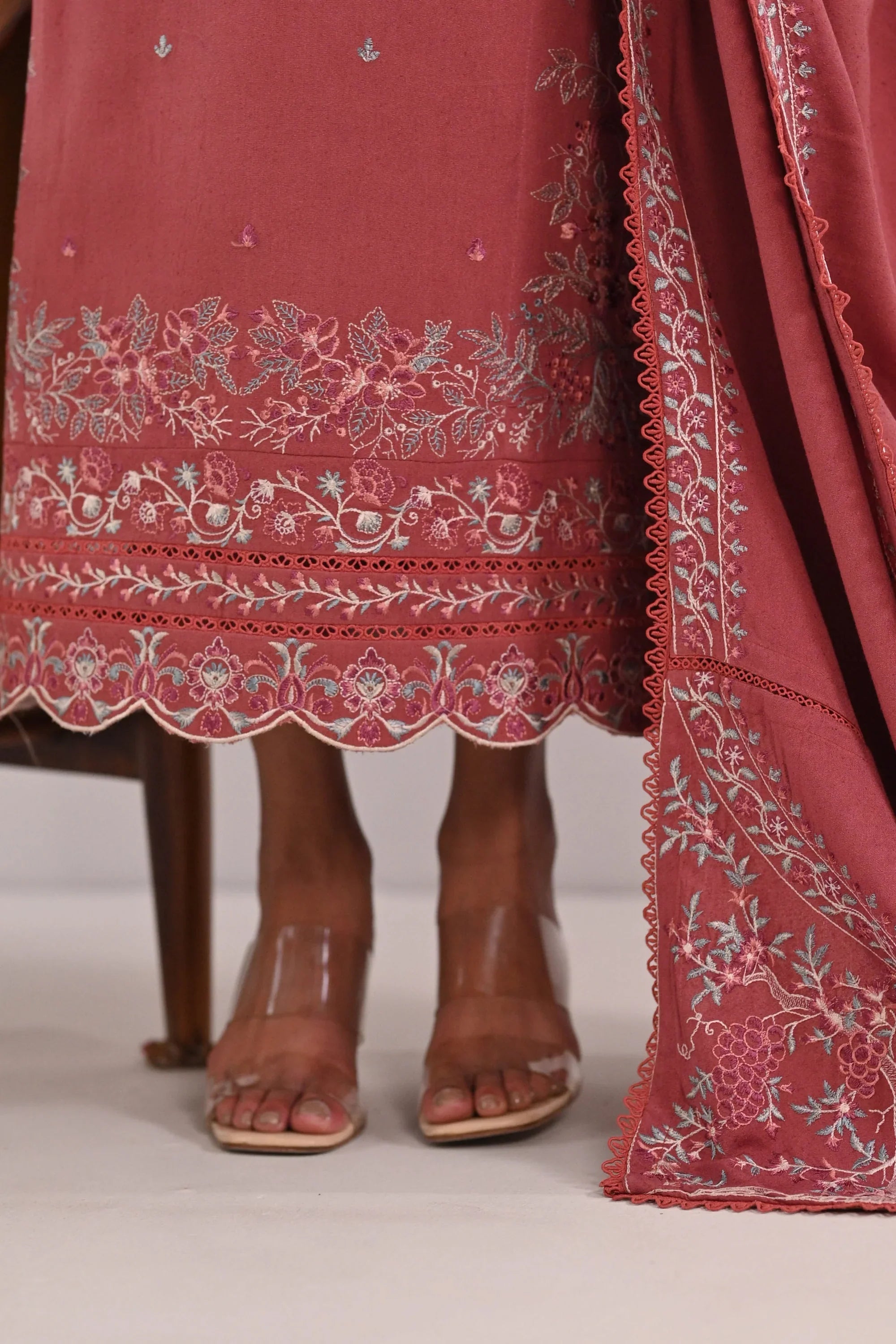 BATIK - 3PC DHANAK EMBROIDERED SHIRT WITH DHANAK EMBROIDERED SHAWL AND TROUSER - HZU2488