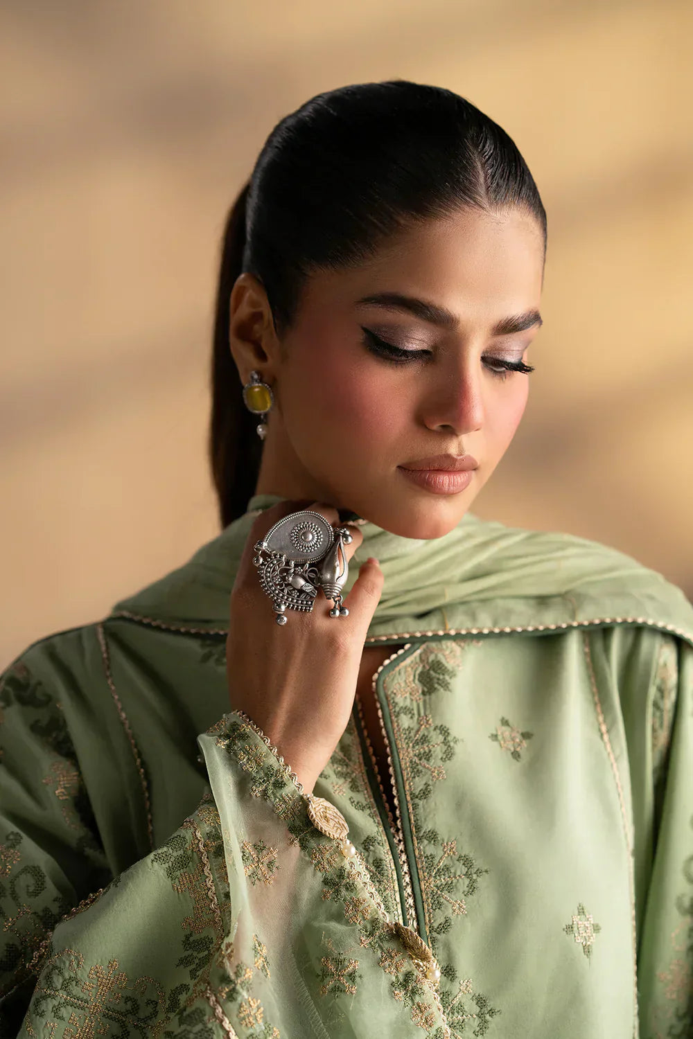 ETHNIC - 3PC LAWN EMBROIDERED SHIRT WITH MANAAR PRINTED DUPATTA AND TROUSER - HZG2246