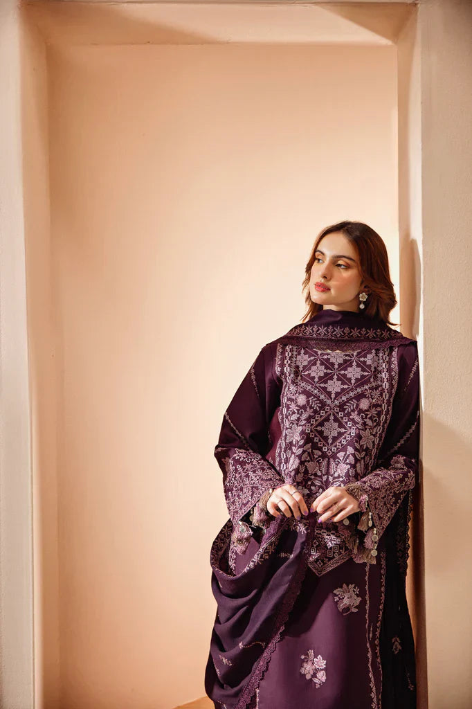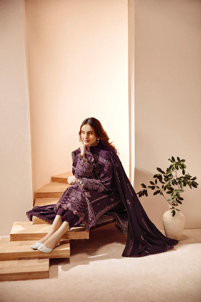 FLORENT - 3PC DHANAK EMBROIDERED SHIRT WITH DHANAK EMBROIDERED SHAWL AND TROUSER - HZG1934