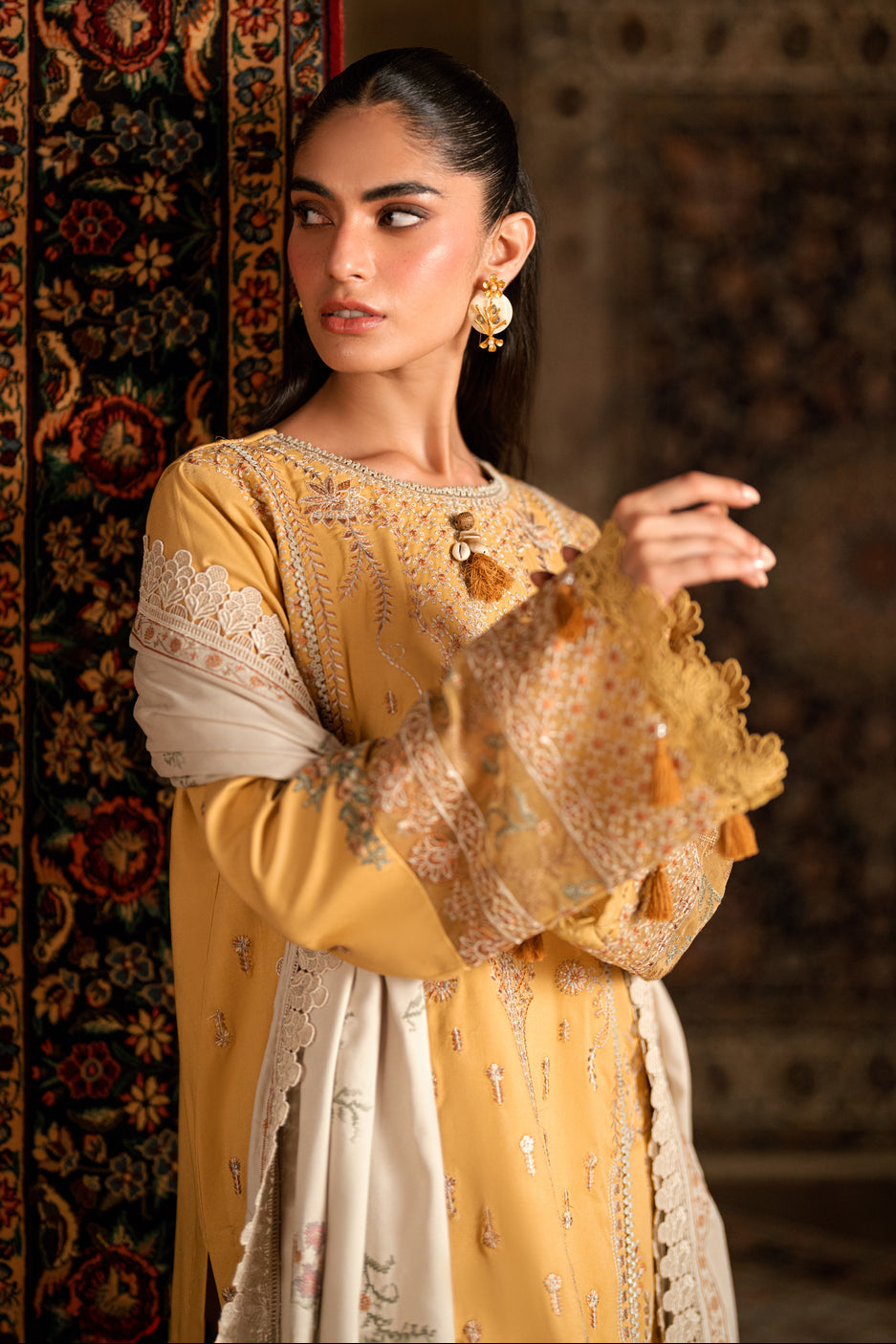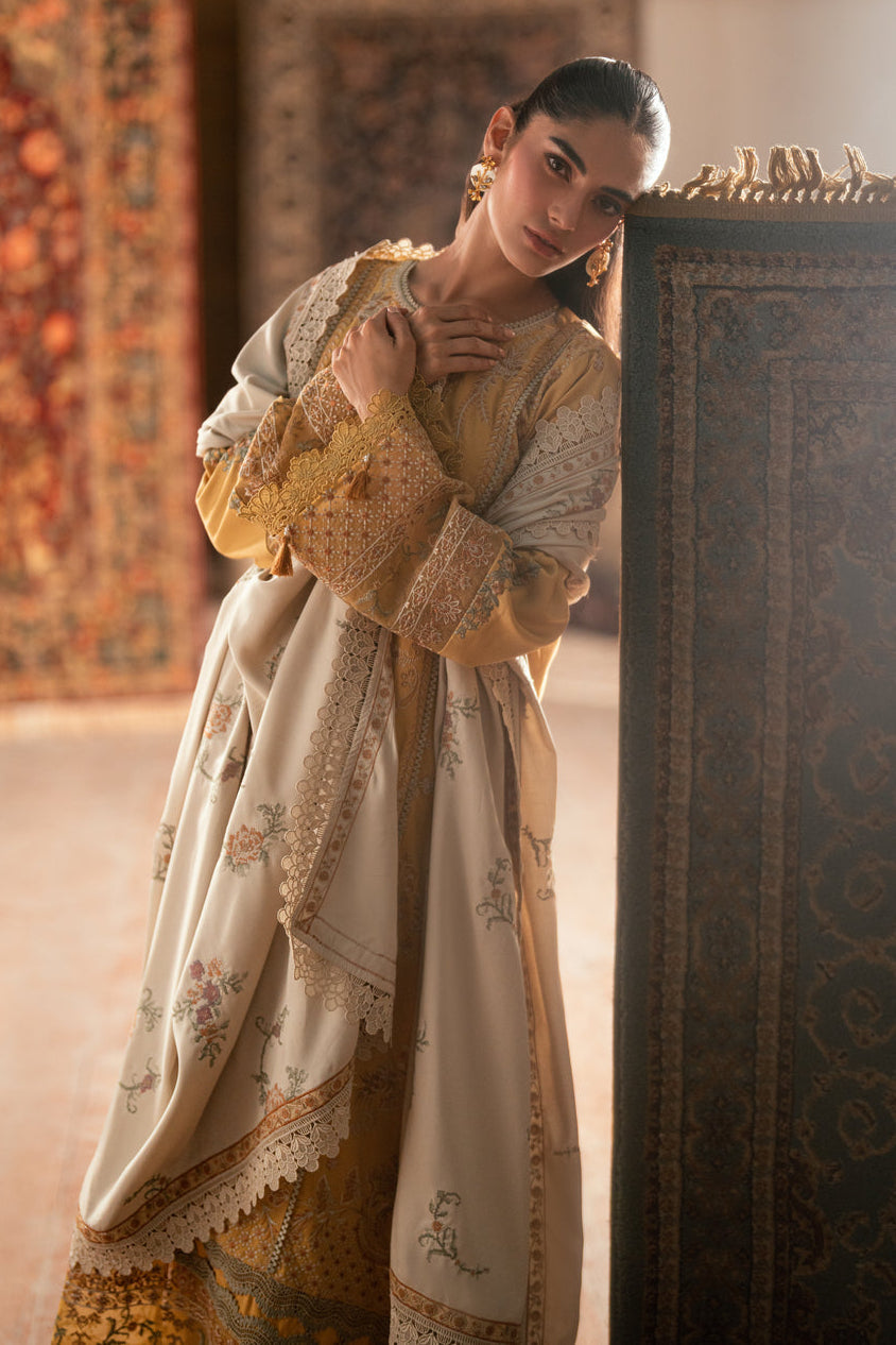 FLORENT - 3PC DHANAK EMBROIDERED SHIRT WITH DHANAK EMBROIDERED SHAWL AND TROUSER - HZG2604