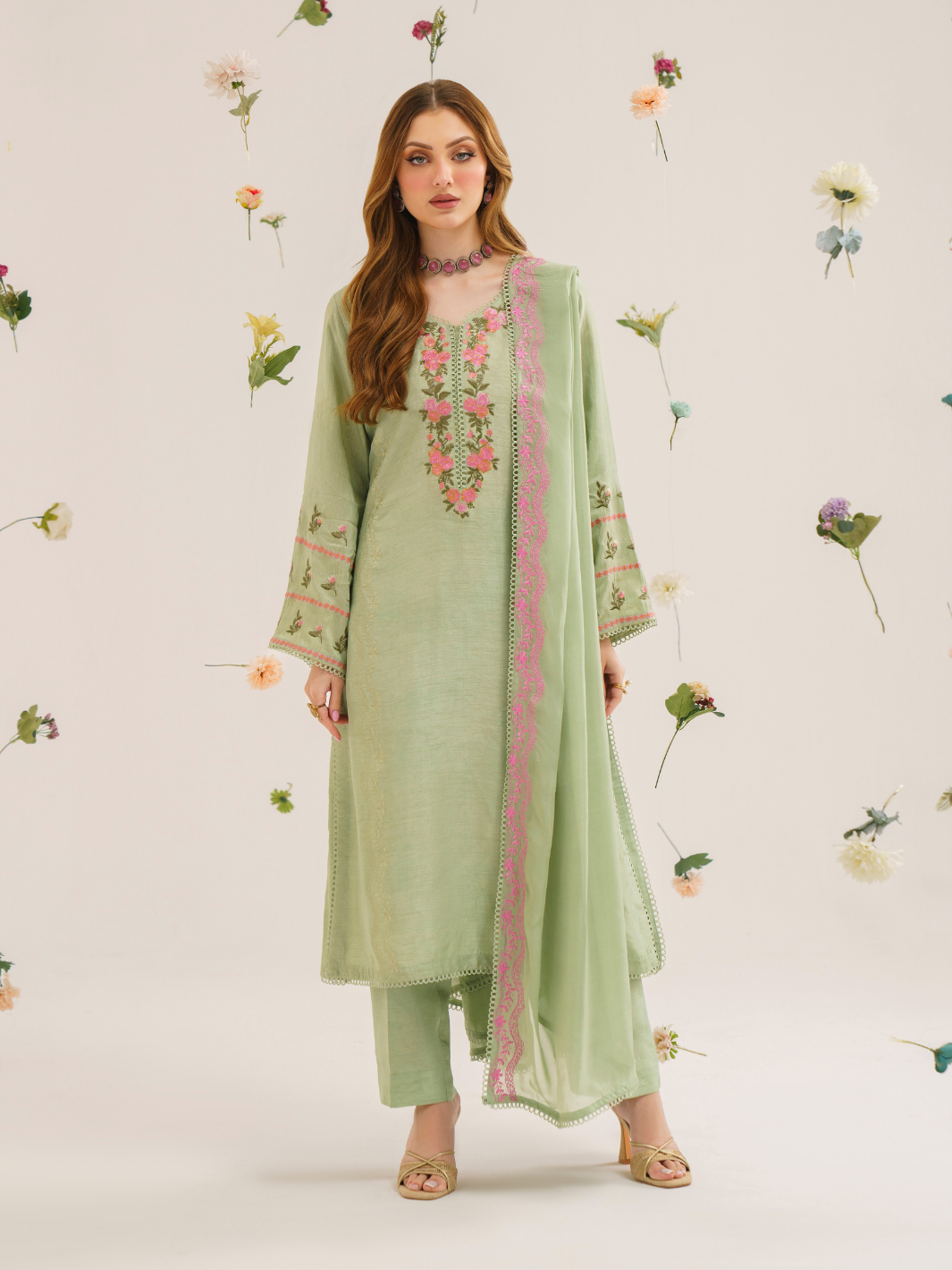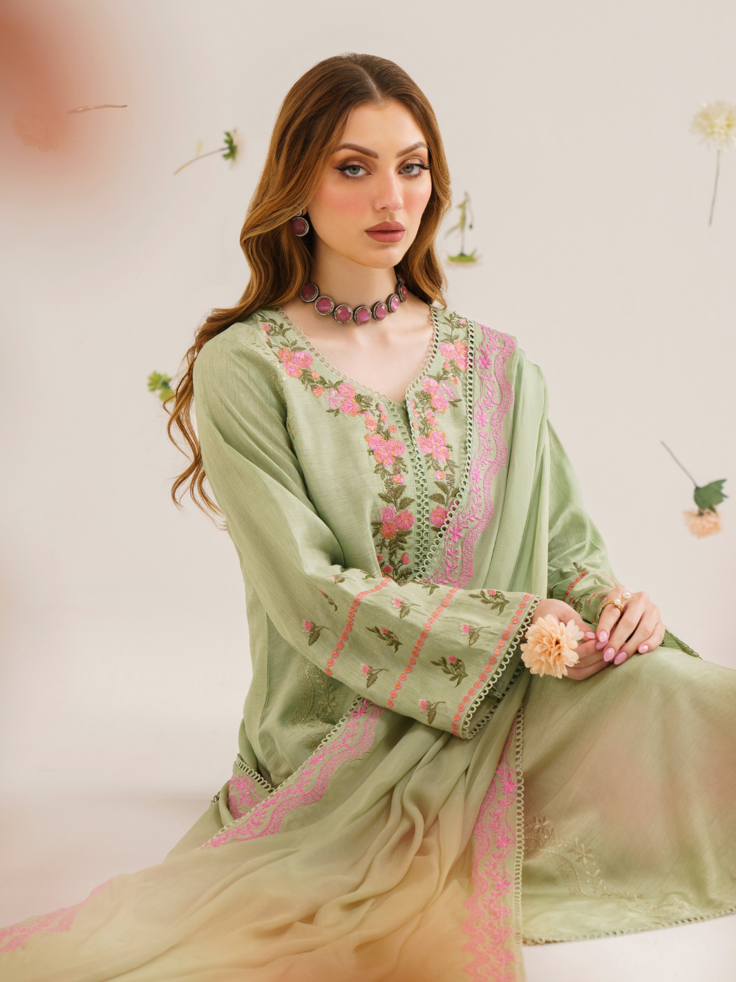 GARNET - 3PC LAWN EMBROIDERED SHIRT WITH CHIFFON EMBROIDERED DUPATTA AND TROUSER - HZG1602