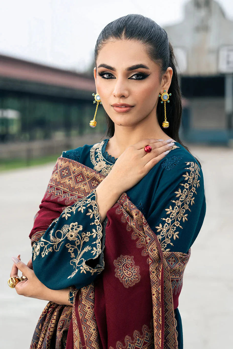 IZEL - 3PC DHANAK EMBROIDERED SHIRT WITH TWILL PRINTED SHAWL AND TROUSER - HZG2419