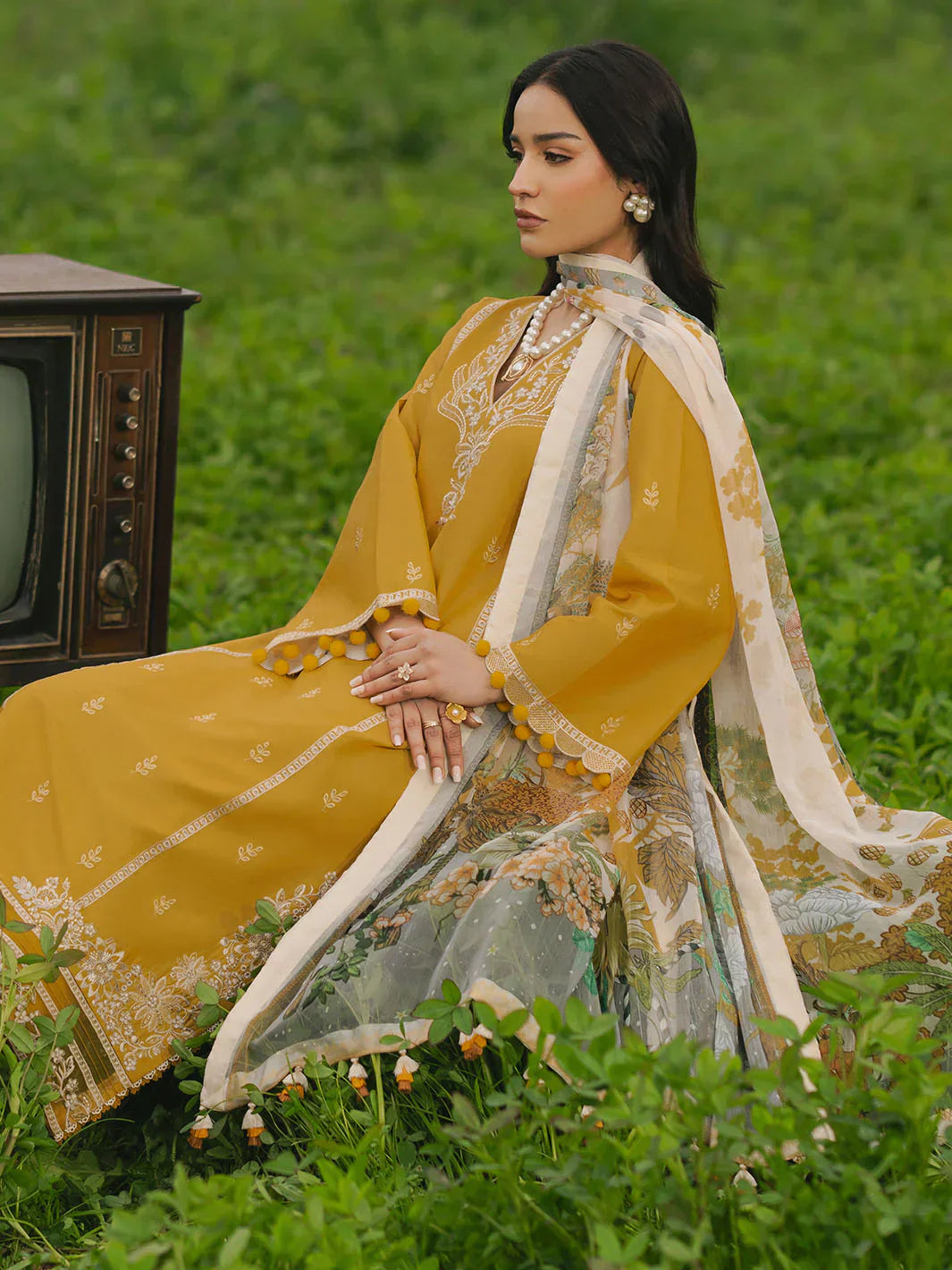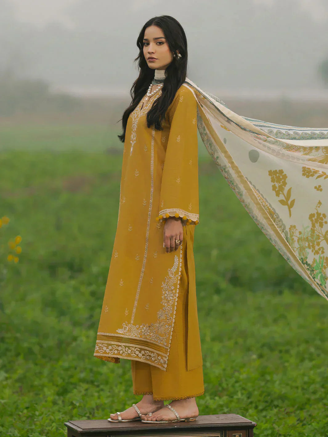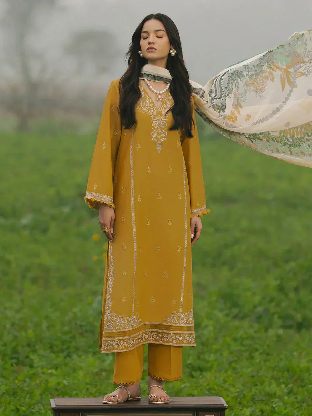 IZEL - 3PC LAWN EMBROIDERED SHIRT WITH MANAAR PRINTED DUPATTA AND TROUSER - HZG2169
