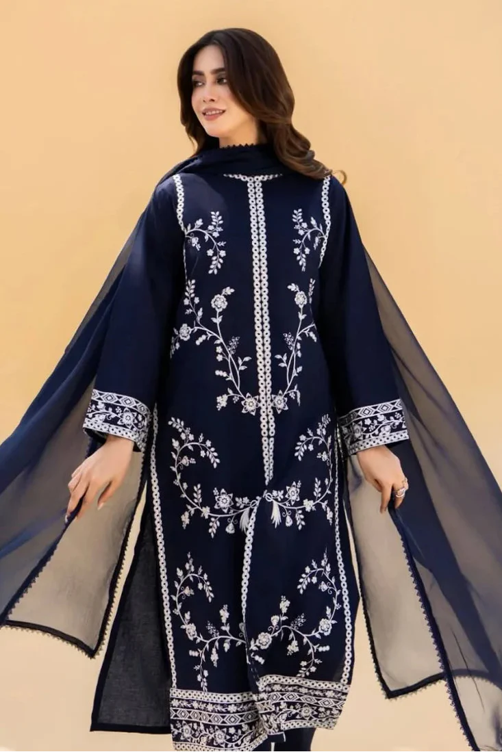 LAZULI - 3PC DHANAK EMBROIDERED SHIRT WITH CHIFFON DUPATTA AND TROUSER - HZG2609