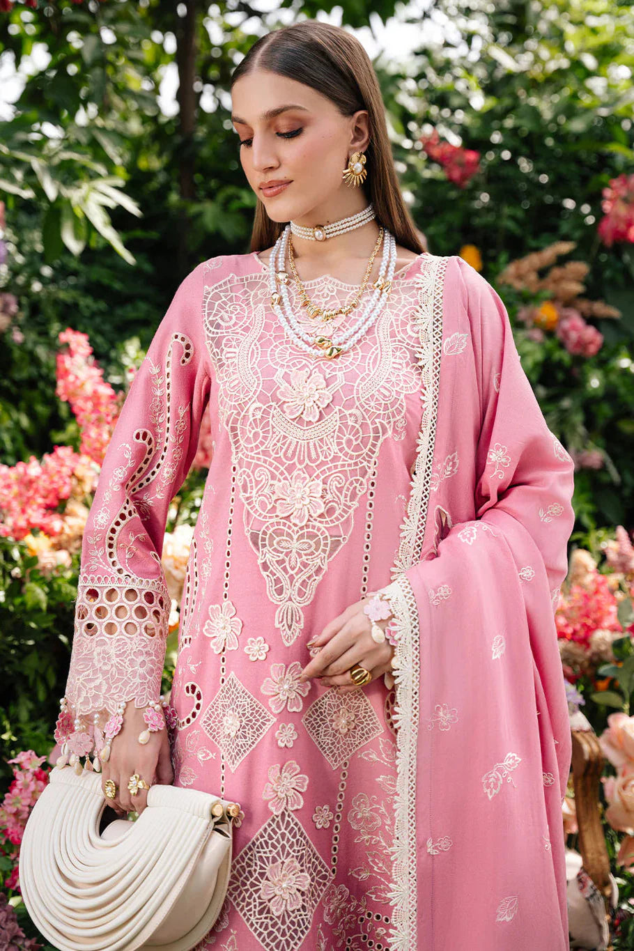 MAHNUR - 3PC LAWN EMBROIDERED SHIRT WITH KHADI NET EMBROIDERED DUPATTA AND TROUSER - HZG2723