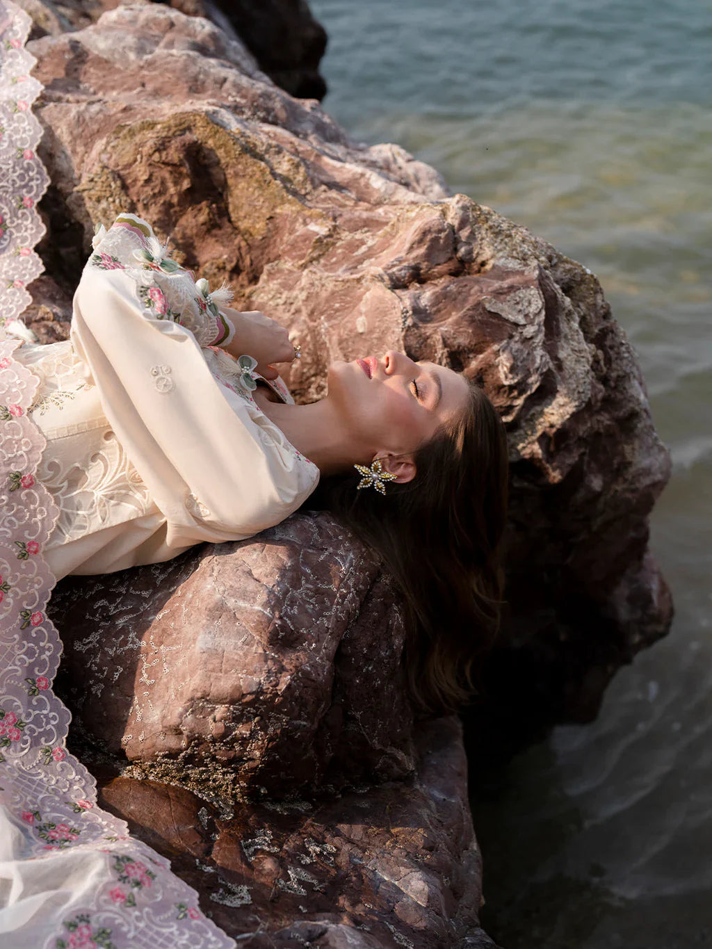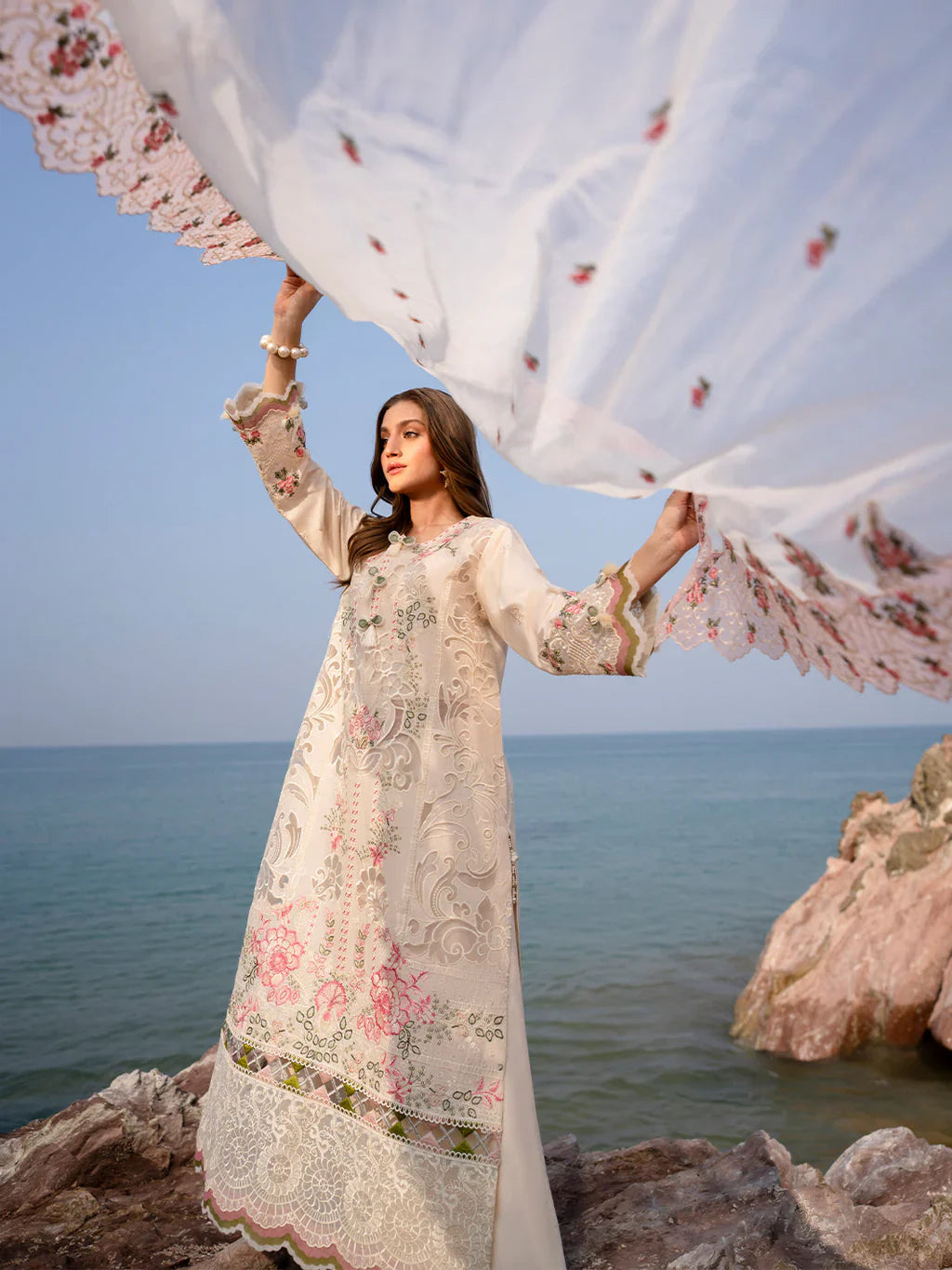 MAHNUR - 3PC LAWN LASERCUT EMBROIDERED SHIRT WITH KHADI NET EMBROIDERED DUPATTA AND TROUSER - HZG2710