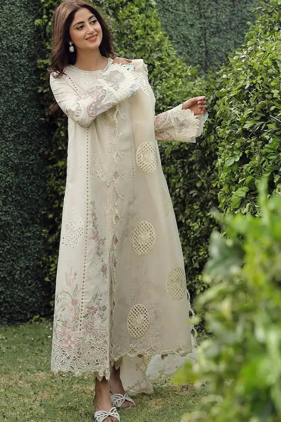 QALAMKAR - 3PC LAWN CHIKANKAARI EMBROIDERED SHIRT WITH KHADI NET EMBROIDERED DUPATTA AND TROUSER - HZG2706