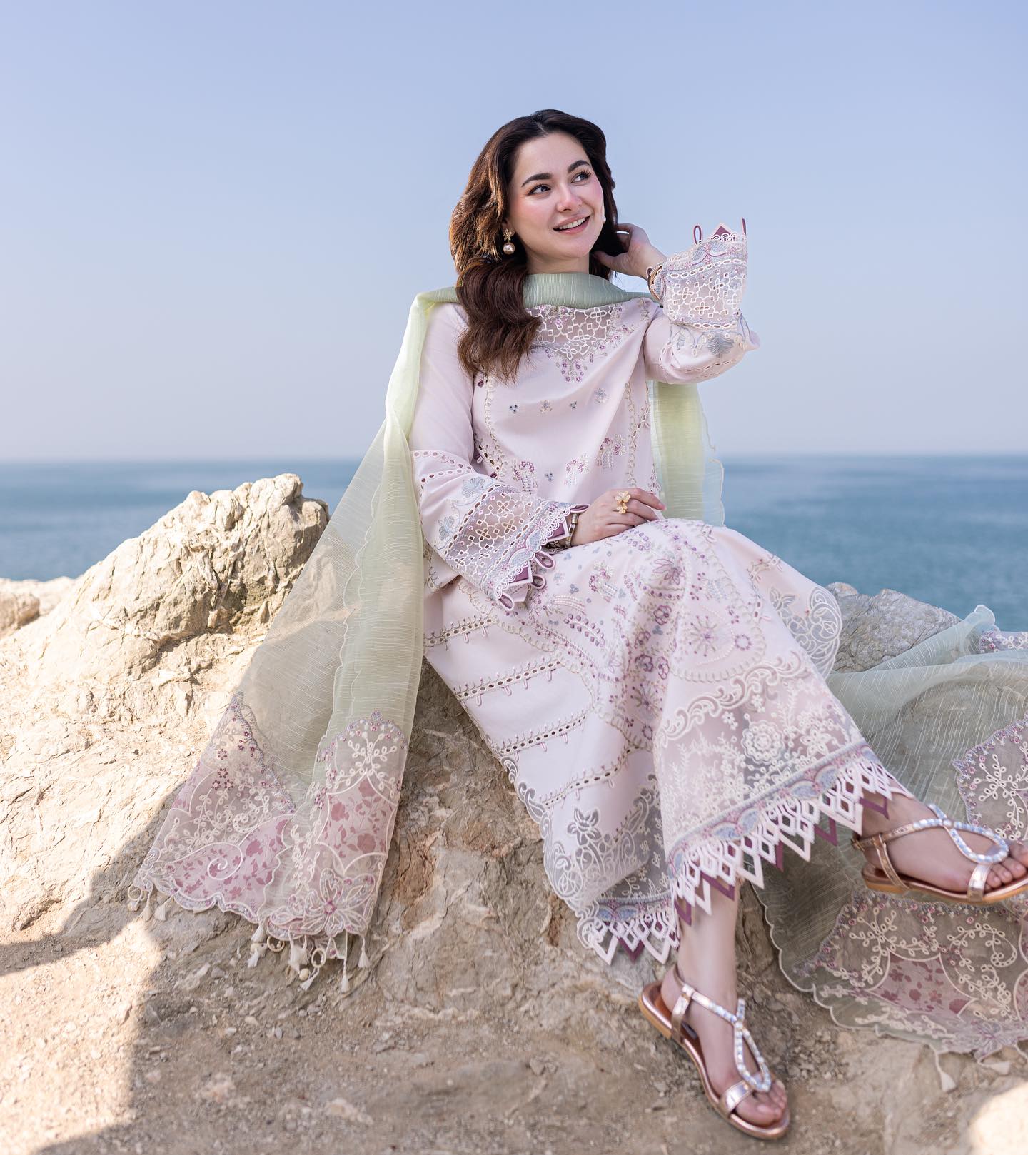 QALAMKAR - 3PC LAWN CHIKANKAARI EMBROIDERED SHIRT WITH ORGANZA EMBROIDERED DUPATTA AND TROUSER - HZG2264