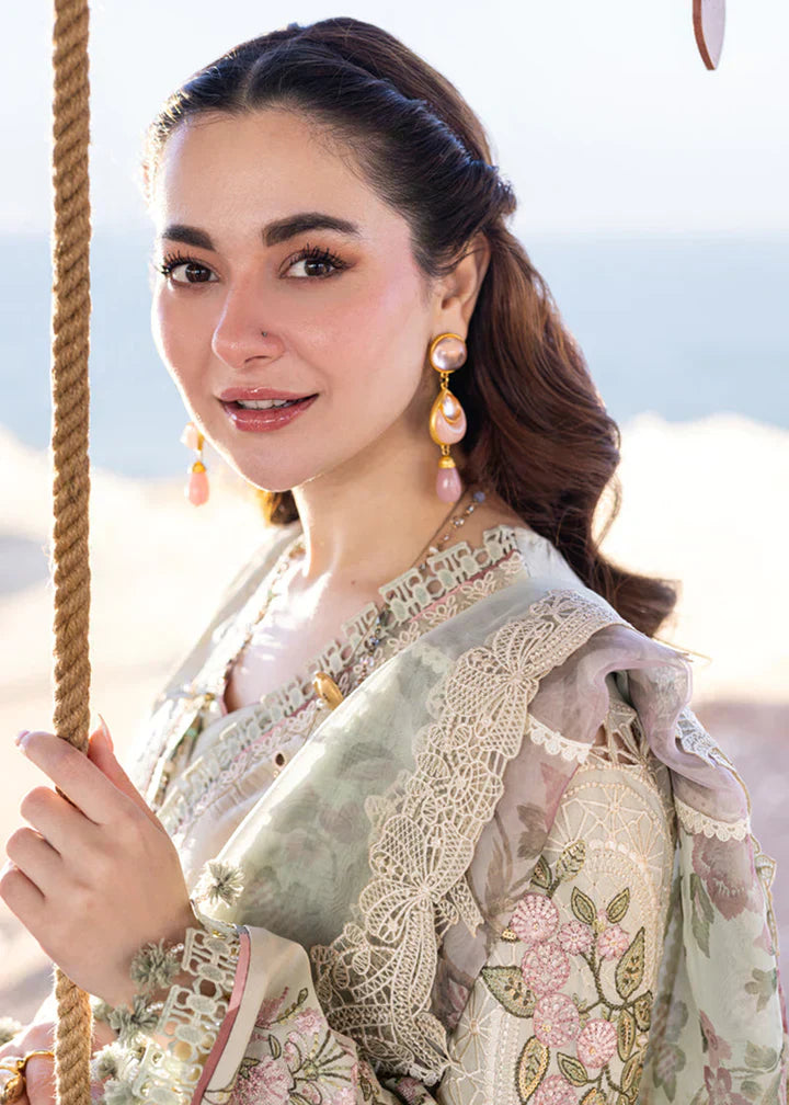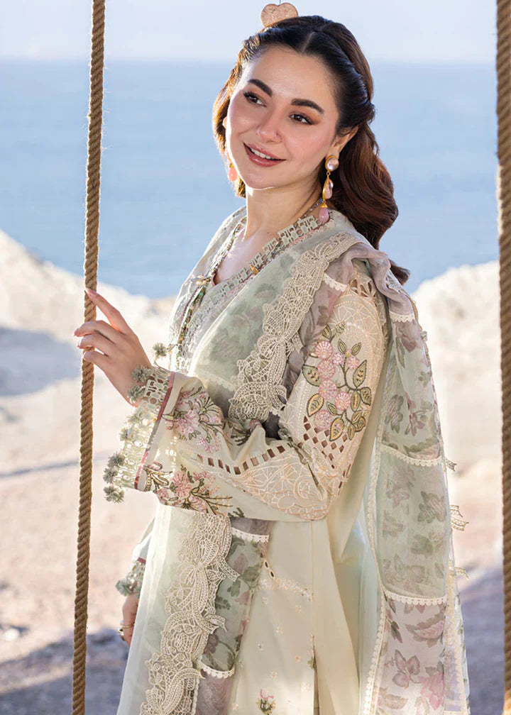 QALAMKAR - 3PC LAWN CHIKANKAARI EMBROIDERED SHIRT WITH ORGANZA EMBROIDERED DUPATTA AND TROUSER - HZG2186