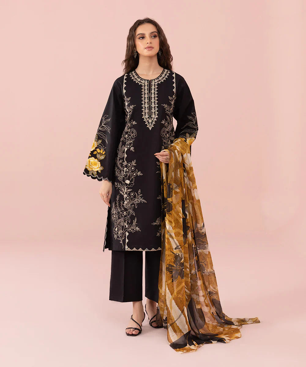 Dyed Embroidered Cambric Shirt Front 1.15M