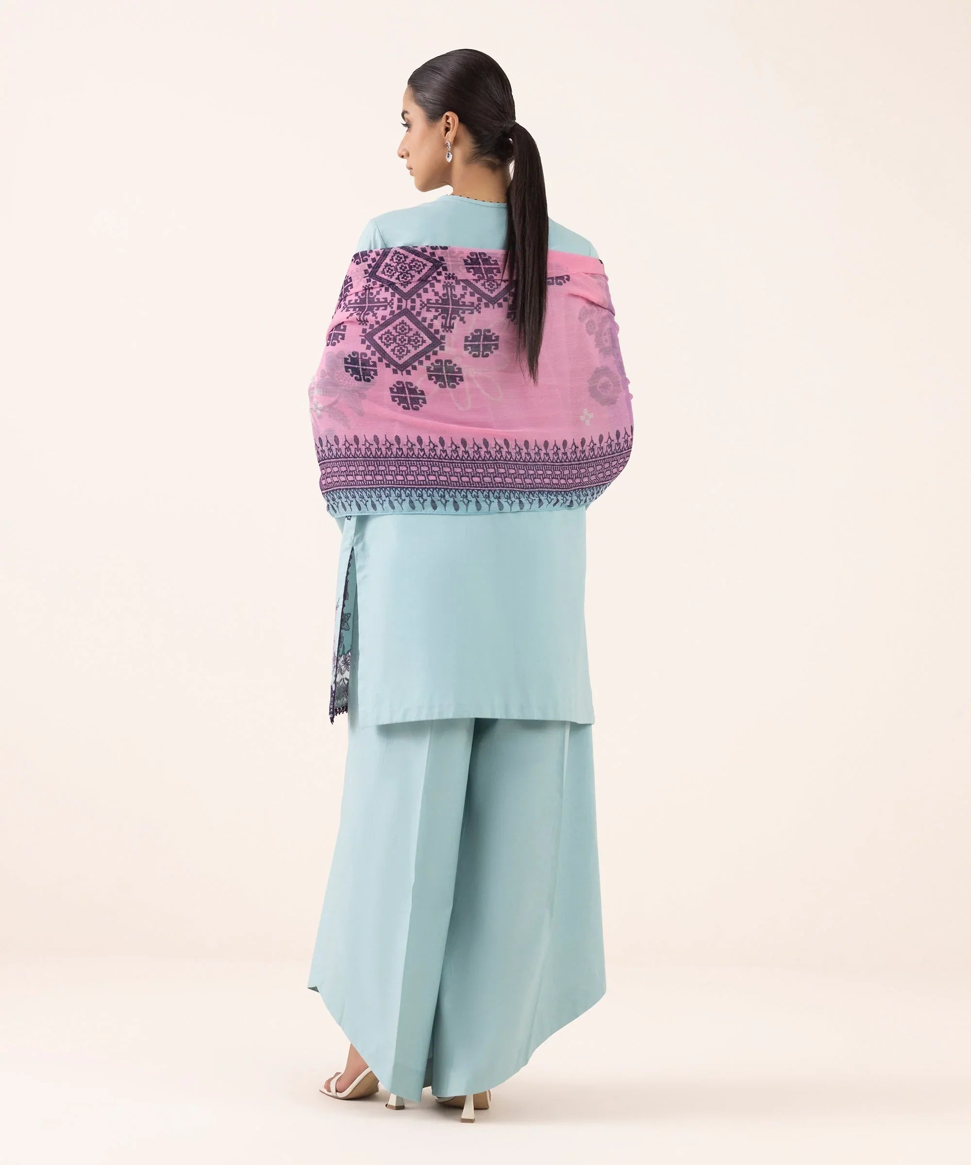SAPPHIRE - 3PC DHANAK EMBROIDERED SHIRT WITH TWILL PRINTED SHAWL AND TROUSER - HZU2489
