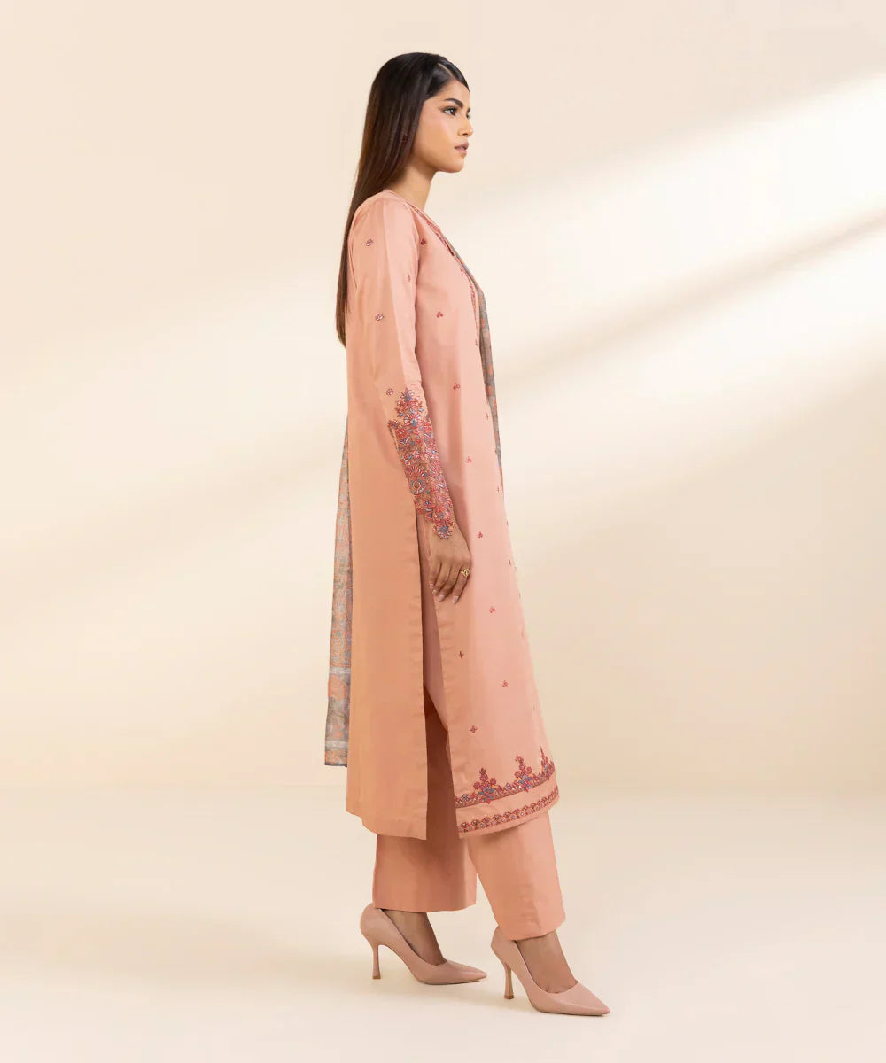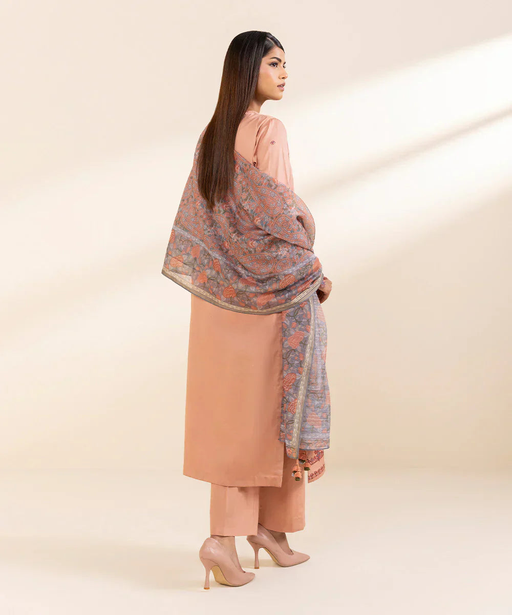 SAPPHIRE - 3PC LAWN EMBROIDERED SHIRT WITH MANAAR PRINTED DUPATTA AND TROUSER - HZG2064